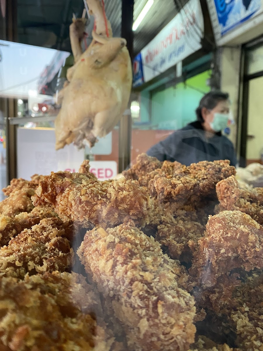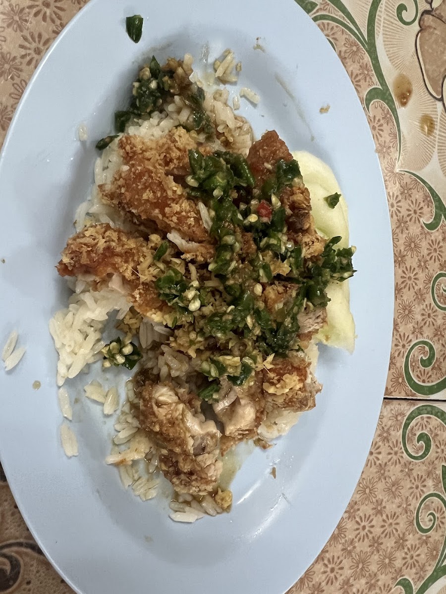 Yummy fried chicken with rice. Comes with soup and iced tea. Crispy and crunchy. Simply Delicious. No frill restaurant.