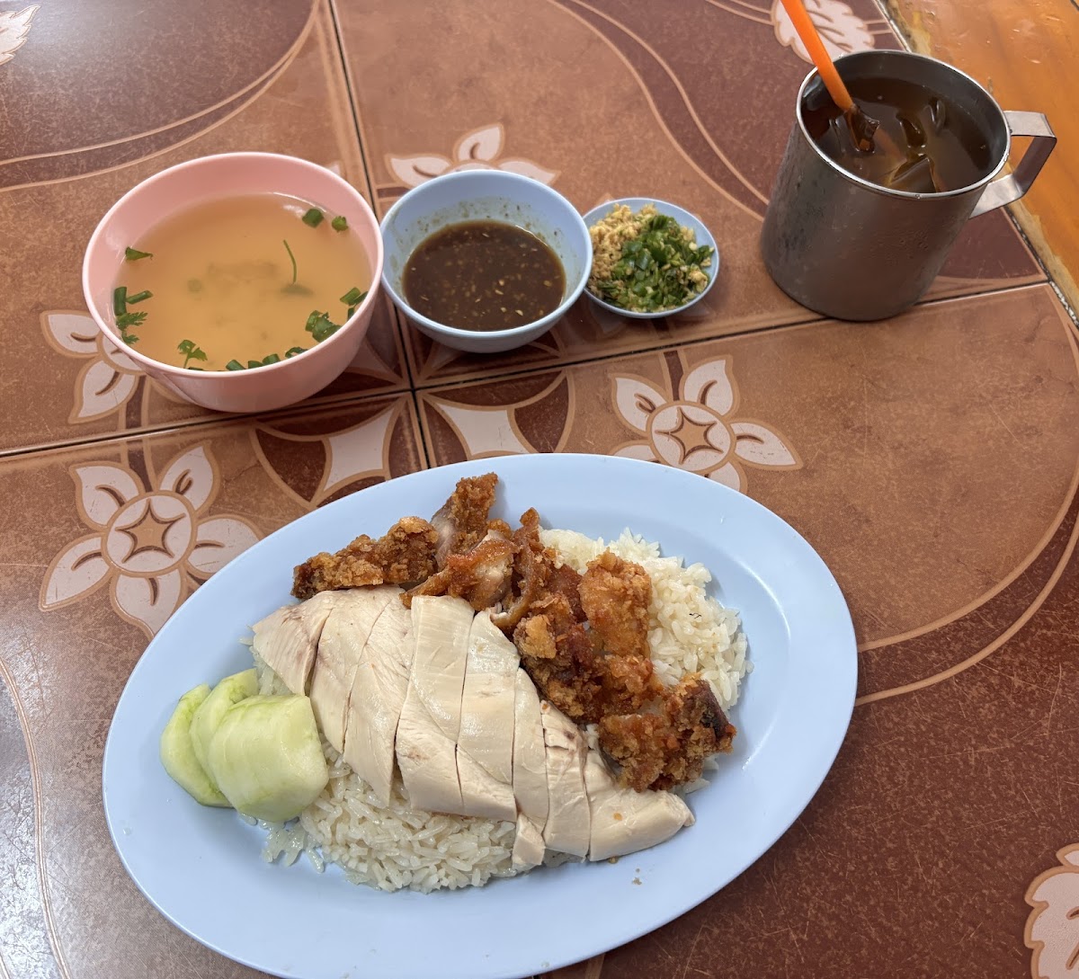 Tender steamed and perfectly crispy chicken for a morning breakfast… if it’s your thing… and it is definitely my thing. Ask for less sugar in the coffee unless you like it sweet sweet.