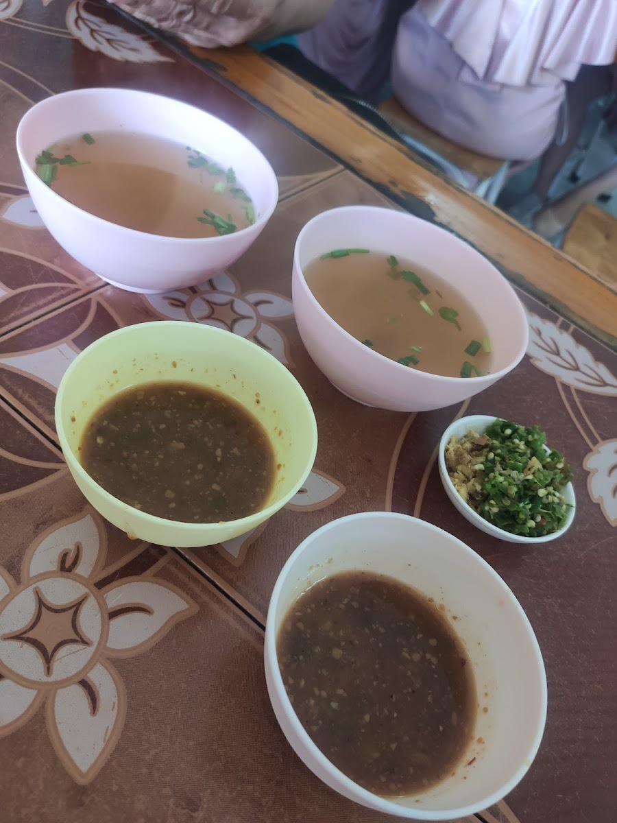 Approximately five/six items on the menu, really simple but great value and food. Service was extremely quick. Complimentary soup, sauces, and ice tea. 70baht for everything in the photo. Would recommend!
